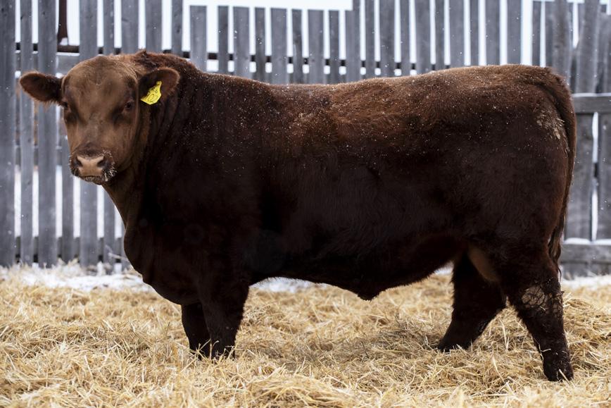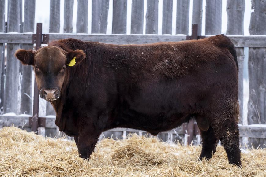 2025 was a year that the ranching community needed after years of increased inputs, and dry summers the strong market and snow coverage is a welcomed relief. We hope that this will be a continuing trend for 2026. We are pleased to be able to offer a consistent group of Long Yearling Red Angus Bulls. These May/June born bulls are fed their first winter on a moderate growth ration to ensure longevity. During the summer they are turned out onto the coulee pasture, where they have to navigate hills and brush before being brought back to the yard in September. September to current date they have been on a balanced TMR ration and allowed to bloom.