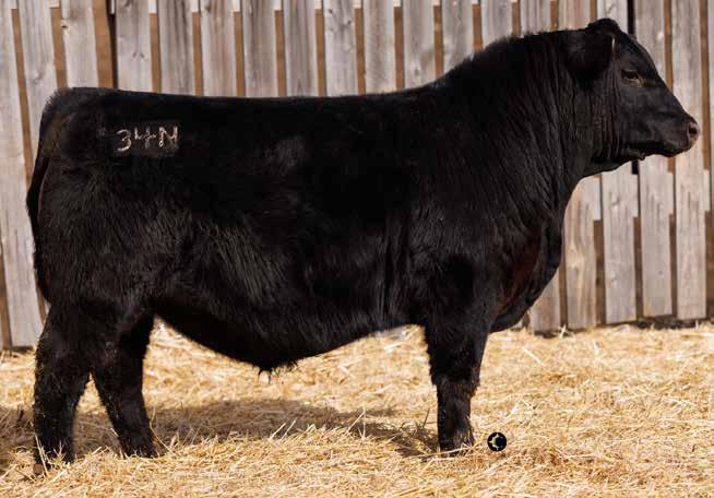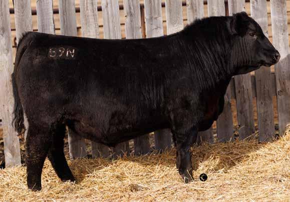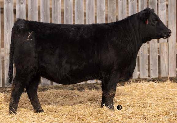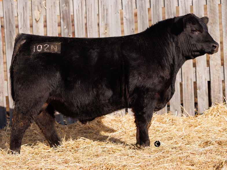 We purchased Alcatraz from Hamilton Farms in 2019 at a Canadian record for $200,000 for ½ interest with our friends at Bar-E-L Angus. Alcatraz checks all the boxes. He is so sound with a perfect foot, powerful, lots of muscle shape, hair and a very docile temperament. He has also become our go to heifer bull that won’t sacrifice pounds in the fall! His daughters are raising some of our very best calves which has earned him his final mark of approval. Alcatraz was sold this past fall to Lindskov’s LT Ranch in South Dakota so sons will be limited in the future, collect them while you can, you’ll be happy you did!