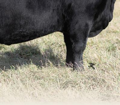 Many, many years back a female by the name of Red PFRA MS High Mark 148K was purchased by my family from the Manitoba Magic Sale. I spent a number of years trying to nd a way to acquire a daughter of this female from my parents and it nally happened in the form of Red Riverdale MS 3P, and what a cow family she started! e Dam to this heifer, JJL MS Black Dynamic 67F, is a knockout! She is easy to nd and hard to forget. Her daughters always follow suit and this calf is no exception. She carries the feminine style we have come to expect from the Dynamic cow family but don’t be fooled, they have the performance to bring in a herd bull every time. An added bonus, she is naturally easy going and gentle natured making her a pleasure to work with.