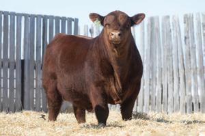 is heifer calf may just be the perfect combination of performance & femininity. She is dark Cherry Red, broad made and strong footed. Expect some power out of this female from the sire side and loads of maternal greatness from the Kit cow family bottom side. e Kit cows are well known here for their eye appeal, strong udder structure and longevity.