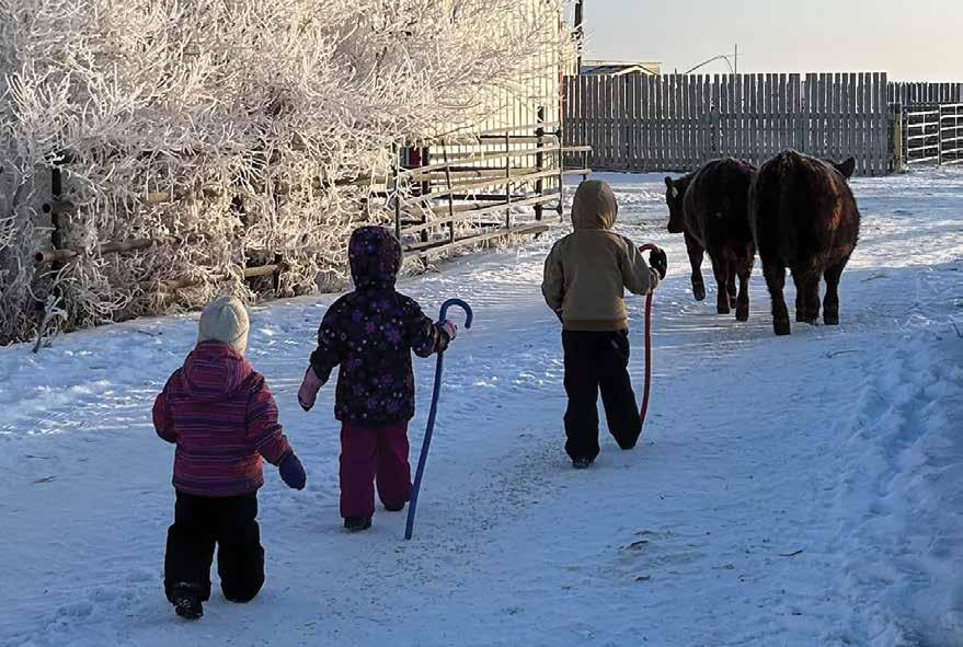 Following Olds College, Darren came back to the ranch fulltime. Today, Darren and his partner Kylie are raising Kord, Henrietta, and RayLynn, who represent the fifth generation of their family to farm, and the fourth generation of Red Angus breeders.