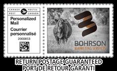 HEALTH: All sale animals have met all necessary health requirements and it is the buyer’s responsibility and expense to determine health requirements for importing any animal into his province or state. Bohrson Marketing Services assume no responsibility for the health status of any animal in the sale.
