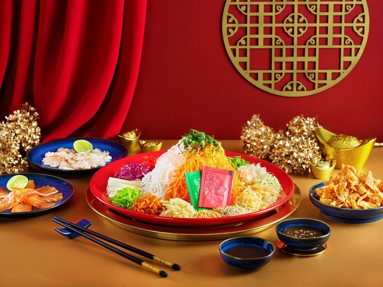 Five Spice Powder, Smoked Salmon, Yu Sheng Sauce, Lime Leaves & Lime