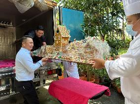 Then, on 8 Dec, the children sent the gingerbread village to Sabah Tourism Board, together with Santa, Mr. Yusuf, and TAH's CSR and Sales & Marketing teams.