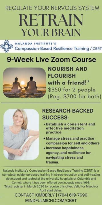 Kimberly Stewart draws on 20 years' teaching experience to share contemplative healing methods, offering Nalanda Institute's evidence-based CBRT to reduce stress and cultivate resilience in the mind, heart, and body. Schedule free 15-minute consult. See ad, page 12.