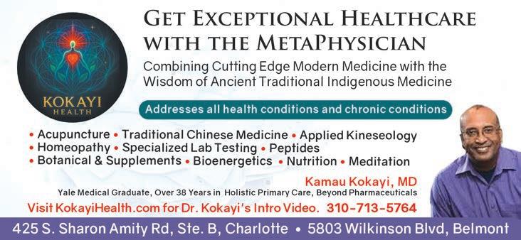 Kamau Kokayi, M.D., is owner of Kokayi Health Services with two locations at 425 S. Sharon Amity Rd. Ste. B in Charlotte and 5803 Wilkinson Blvd., in Belmont. For more information or to make an appointment, call 310-713-5764 or visit KokayiHealth.com.