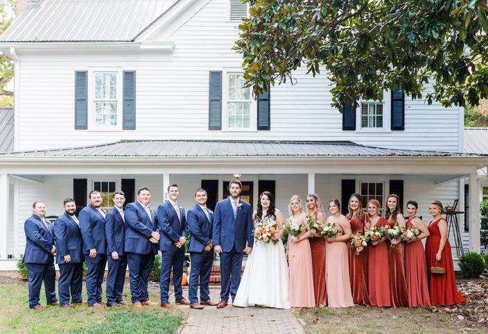 This is your perfect Carolina setting with the beautiful historical farmhouse, large pinewood barn and spacious shaded lawns. Outbuildings house space for catering and a bar/lounge area. The wedding site is nestled at the edge of a beautiful forest with sunset views. Sowing happiness and reaping joy for 17 years with wonderful local vendors has been a family tradition and pleasure.