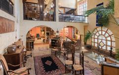 An example of her vision is in the first-floor primary bedroom’s en suite bathroom, where a stained glass panel featuring a bathing nude sits above the soaking tub. “This window was over our bathtub when I was growing up,” Briton says. She