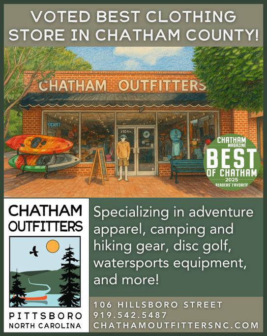 Chapel Hill Magazine is published 6 times per year and Chatham Magazine is published 4 times per year by Triangle Media Partners, 1777 Fordham Blvd., Ste. 105, Chapel Hill, NC 27514