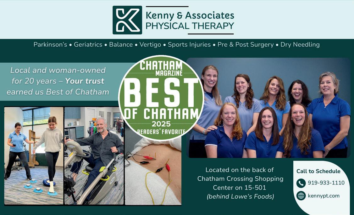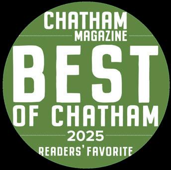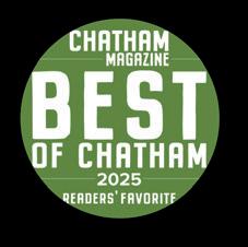 This is just one example of what makes our county such a beautiful place to live; others are all of the restaurants, businesses and service providers that make everything from our date nights to dental visits to home repairs running smoothly. We are thrilled to share the results of the eighth annual Best of Chatham poll in this issue, where a record number of readers made their voices heard! Your votes hightlight favorites across a wide range of categories, from dining and services to home & garden, retail, and arts & entertainment. Flip to page 29 to read features about some of the honorees – including Sabine Farer-Buers of SaBeans Coffee, who makes it her mission to brighten customers’ days – and find the complete list of winners on page 78.