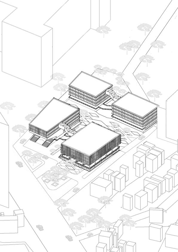 The concept is Interconnection between spaces. Similarly, the buildings are also interconnected to each other. The Private offices are connected to the co-working spaces by a central transitional space where there are event spaces and public parks and recreational spaces.