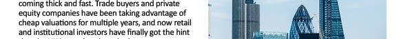 The non-stop takeover action was the biggest clue as to prizes up for grabs, given bids are still coming thick and fast. Trade buyers and private equity companies have been taking advantage of cheap valuations for multiple years, and now retail and institutional investors have finally got the hint that the UK is worth a closer look.