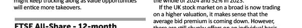 If the UK stock market on a broad is now trading on a higher valuation, it makes sense that the average bid premium is coming down. However, there are still chunky offers on an individual basis.