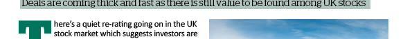The FTSE All-Share is now trading on 12.3 times earnings, confirming the re-rating is in motion. However, the market is still cheap compared to history. If investors aren’t prepared to pay higher multiples of earnings, then the M&A juggernaut might keep trucking along as value opportunities will entice more takeovers.