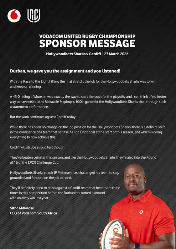 The Hollywoodbets Sharks and Cardiff have met on four occasions in the VURC, with the Durbanites’ only victory being the 42-22 win in the most recent encounter at Arms Park in January 2025. Cardiff have visited Hollywoodbets Kings Park three times, winning on each occasion.
