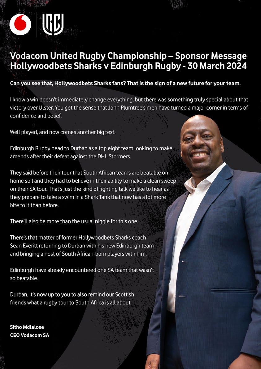 Plumtree concluded that the win against Ulster and today’s outing against Edinburgh, who are currently placed sixth on the URC table, are crucial in terms of the cohesion and momentum that the Hollywoodbets Sharks need to build ahead of their all-important EPCR Challenge Cup Round of 16 fixture against Zebre Parma here in Durban next Sunday, April 7.