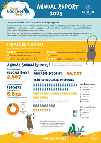 THE LAST 18 months have been challengingveryon many levels for us all, and it’s likely the next few months are to prove equally as testing for everyone, including the charitable sector. This is why we stay eternally grateful to each and every one of you for supporting us. Not just through the good times but the not so good times as well. Your manycraftlemonadecyclists,we’veyear,justsupportyoufundraisingdonationssubscriptions,andthemanyeventstakepartintoourworkareinvaluable.ThislastdespiteCOVID,seenswimmers,runners,bakers,sellers,creationsandsomorefundraising efforts come in. You’re superstars. And the Staff and Trustees send their sincere thanks to you all for your generosity and the amazing activities you undertake to raise money to help sharks. It’s been brought to my attention some subscribers are having issues with PayPal. We’re membersencouragingtotransfer over to Direct Debits. This can be done through the website following the Join Us wouldlink. like to take this opportunity to wish you all a very Happy & Healthy 2022. Thank you all for your support throughout the year. With your help The Shark Trust can continue its much-needed work.