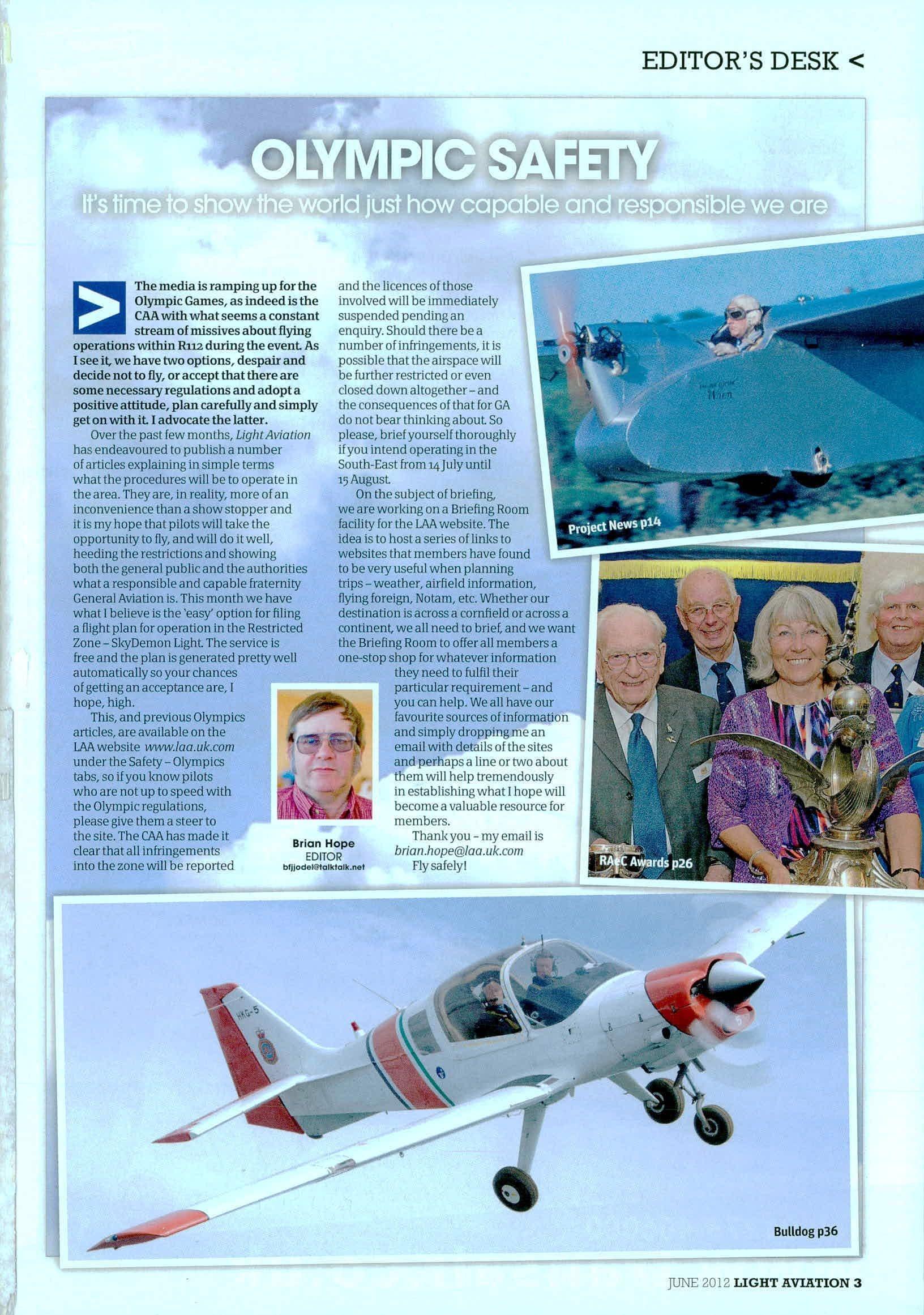 This,andpreviousOlympics articles,areavailableonthe LAAwebsite wwwloo.ukcom undertheSafety-Olympics tabs,soifyouknowpilots whoarenotuptospeedwith theOlympicregulations, pleasegivethemasteerto thesite.TheCAAhasmadeit clearthatallinfringements intothezonewillbereported