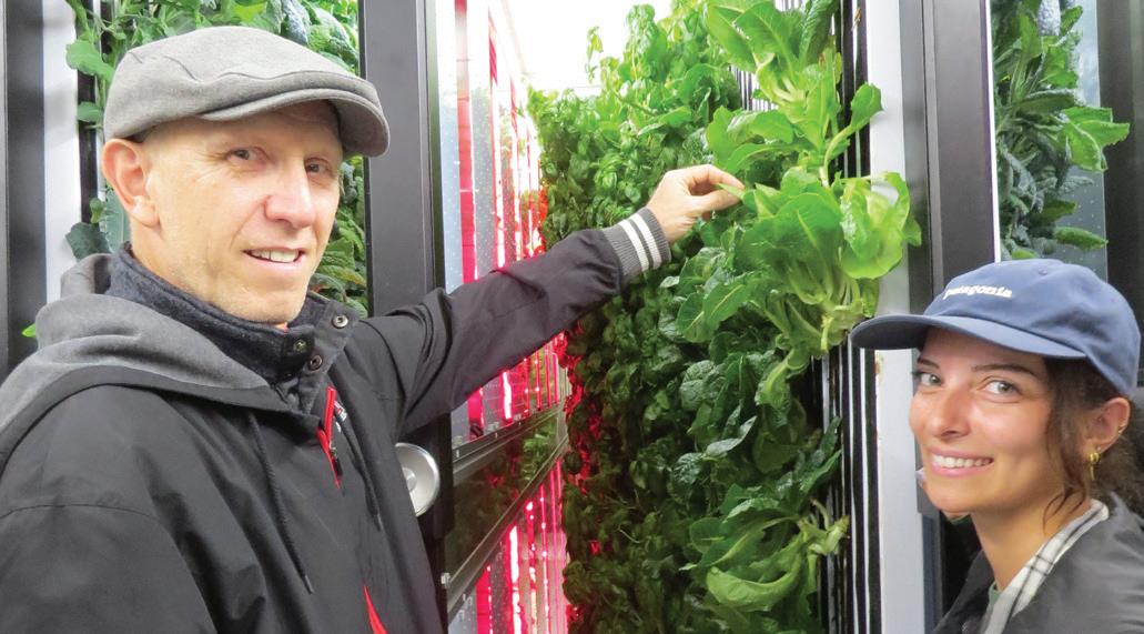 Bryan Flower, director of the Northern Illinois University Edible Campus program and associate director of food systems innovation at NIU, and Laura Fehling, program coordinator for the Edible Campus program, said the HydroPod, a vertical farming system that can be controlled by phone or laptop computer, can produce 5,000 pounds of leafy greens a year.