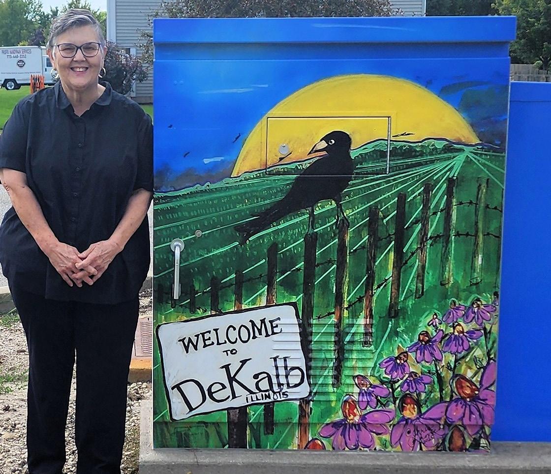 The “Welcome to DeKalb, Illinois” DeKalb High School utility box was painted by Christine Perkovich