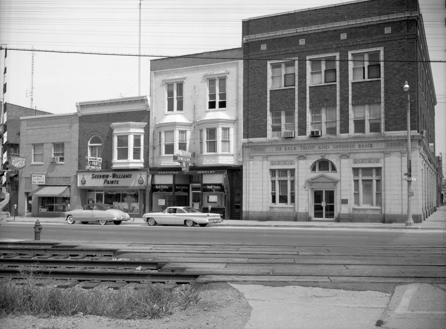 Photo provided by the DeKalb County History Center Archives Looking north at DeKalb Trust and Savings Bank, Lincoln Highway at Fourth Street in DeKalb, 1964.