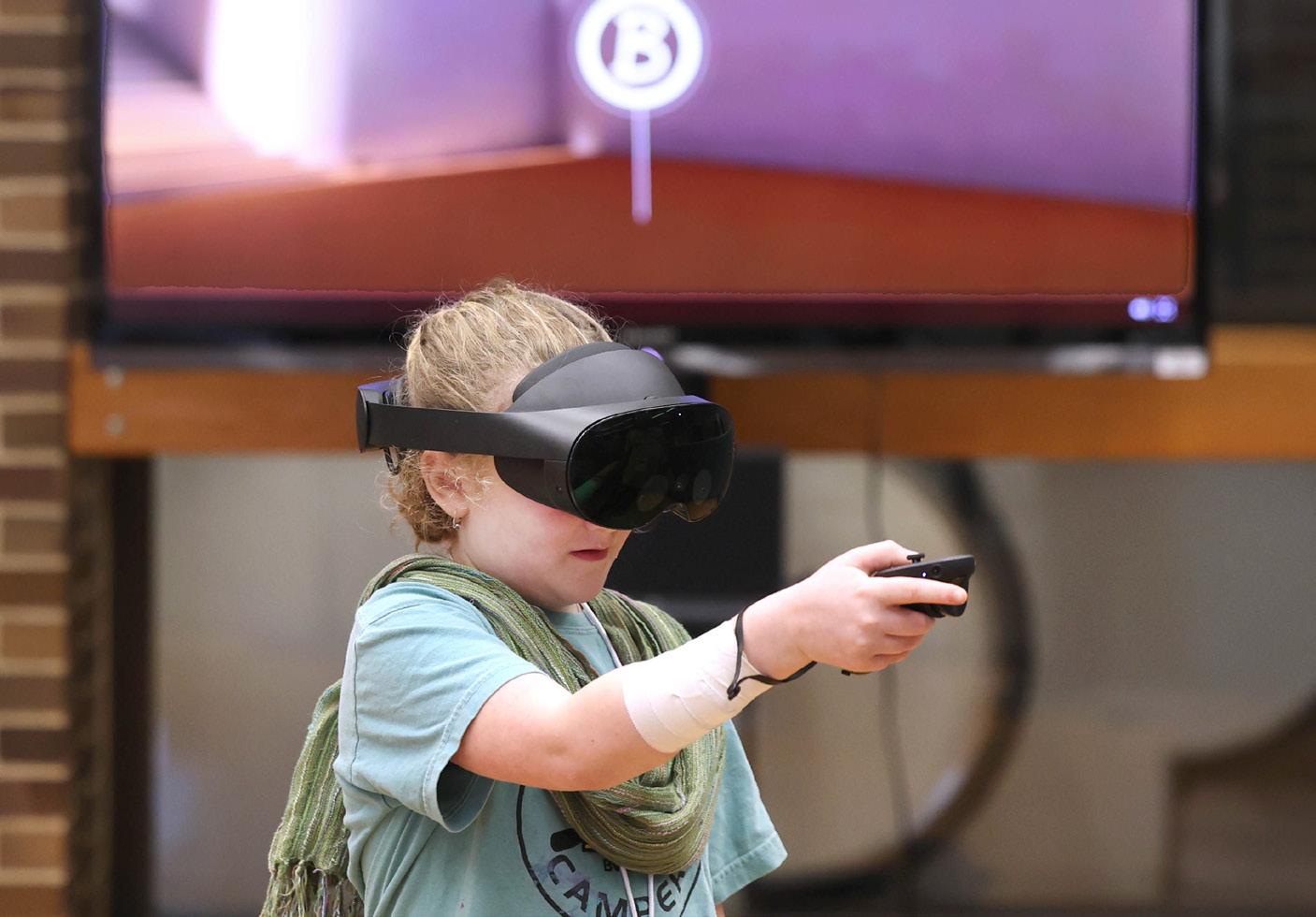 Ellie Langley, 8, of DeKalb checks out the virtual reality exhibit April 5, 2025, during Earth Fest in Founders Memorial Library at Northern Illinois University in DeKalb.