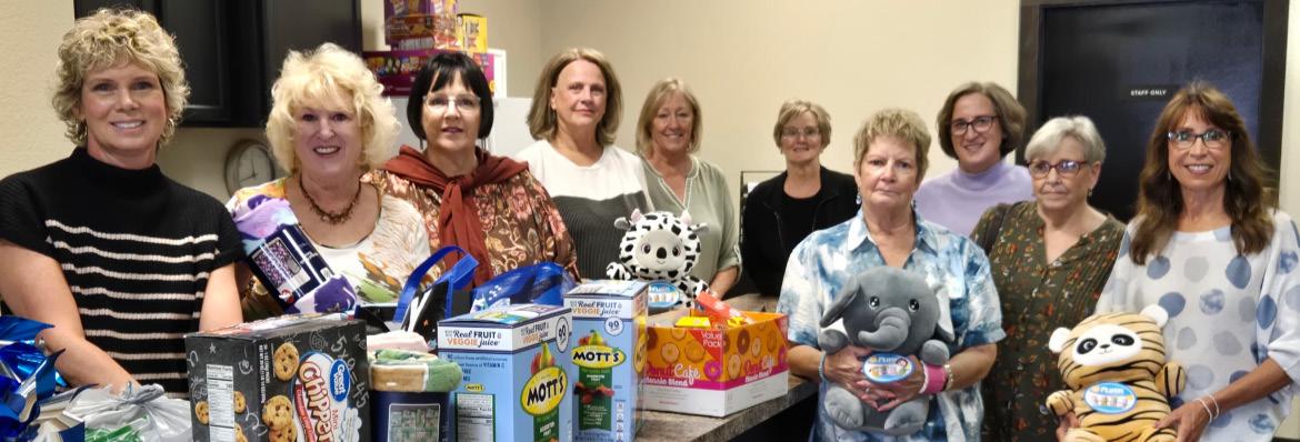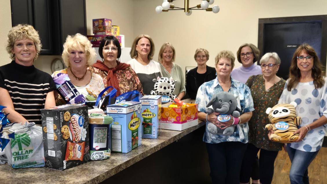 The Tau Pi Chapter of Beta Sigma Phi offers its support to the april House Children’s advocacy Center by donating snacks for the children who come to the center as part of a child abuse investigation. Pictured are Carrie Melton (from left) from april House Children’s advocacy Center; Beta Sigma members Cindy Schott, Cindy Fane, Jan Moser, eileen Sedig and Debbie Donnelly; Lisa Zacharski of april House; and (front row) Lori Johnson, Pat Mcleod and Kim Ptak.