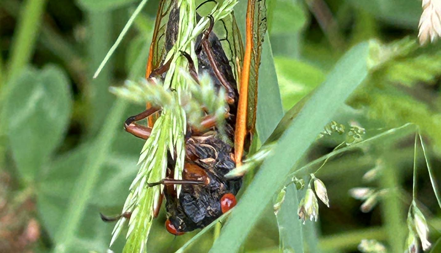 Earleen Hinton A periodical cicada dines on clover and grass June 7 at Big Bend Fish and Wildlife Area between Prophetstown and Erie.