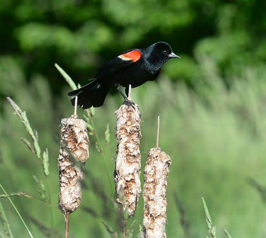 A red-winged blackbird sits on a cattail in a wetland at Big Bend Natural Area between Prophetstown and Erie.