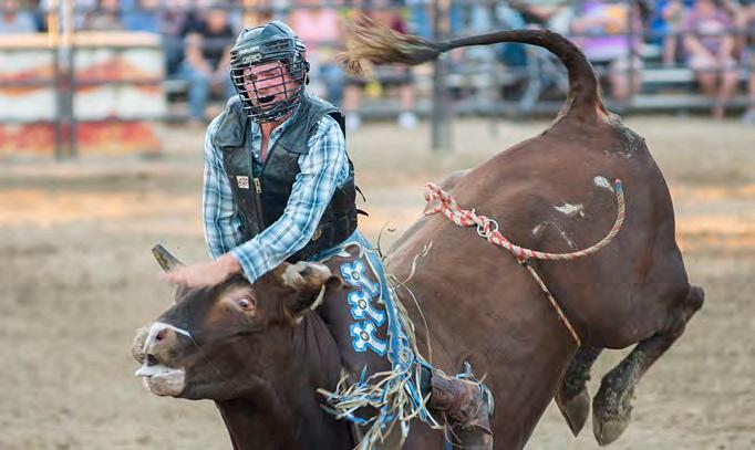 • Tuesday, Aug. 15 : Next Level ProBull Riding, 7 p.m. Cowboys prepare to hang on for 8 seconds while their fourlegged nemesis tries to spoil their plan. Other events are Pleasure Horse Show, 9 a.m.; Open Swine Judging, noon; Jr. Swine Judging, 4:30 p.m.; and Kids Tractor Pedal Pull, 2 p.m.