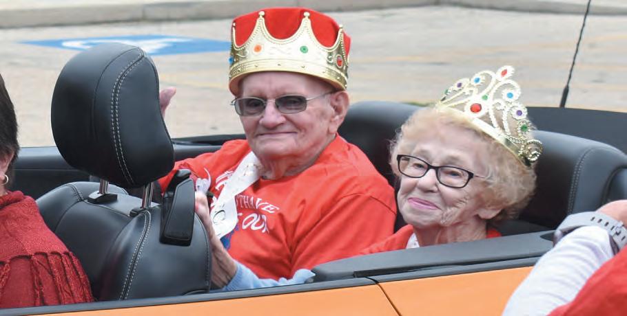 Riverdale’s 2021 and 2022 conferencechampscross country team show theirRams pride at Friday afternoon’s Homecoming parade Riverdale’s Spirit Week included athletic events, dress-up days, the parade, Friday Night Lights with a Powderpuff gameand cheer performance, kingand queen coronation, fireworks and the Homecomingdance.