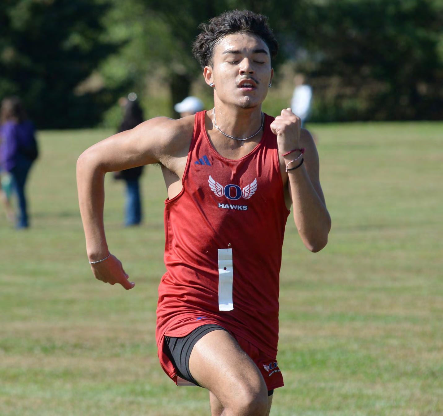 Oregon’s Daniel Gonzalez sprints to the finish line at the Oregon Cross Country Open on Sept. 6 at Oregon Park West. Gonzalez was the top area finisher at the Class 1A Sherrard Sectional. He took 12th in 15:47.6 to advance to the state meet.