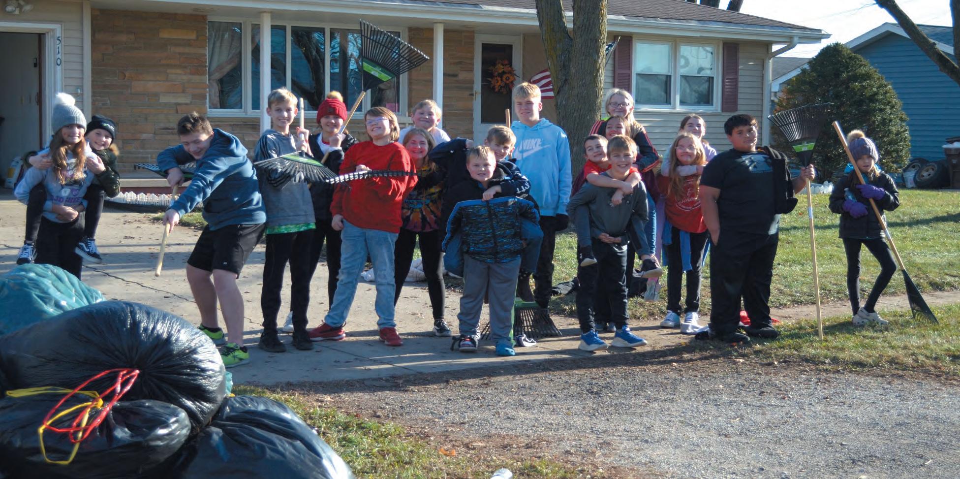rakingleaves at thehome of Dorrie ClarkonTuesday,Nov.22.Groupsofstudents tacklednumerousprojectsaroundtownaspartoftheir Fall ServiceDay