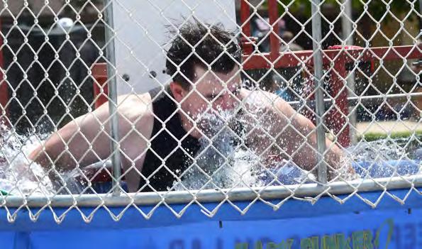 LEFT: Zach Slick makes a splash in the dunk tank at Sauerkraut Days in Forreston on Saturday.