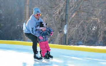 Locatedinthetenniscourtat WaterworksPark,503W.Winfield St.,MorrisonWinterParkfeaturesa skatingrinkplatformmeasuring44 by88feet,honorsystemskaterentals,skatingtrainers,afirepit,picnic tables,musicovertheloudspeakers andstringsofpartylightsalongthe fences.Theparkalsohasnearby sleddinghills,withthewinterfun dependentonMotherNature.