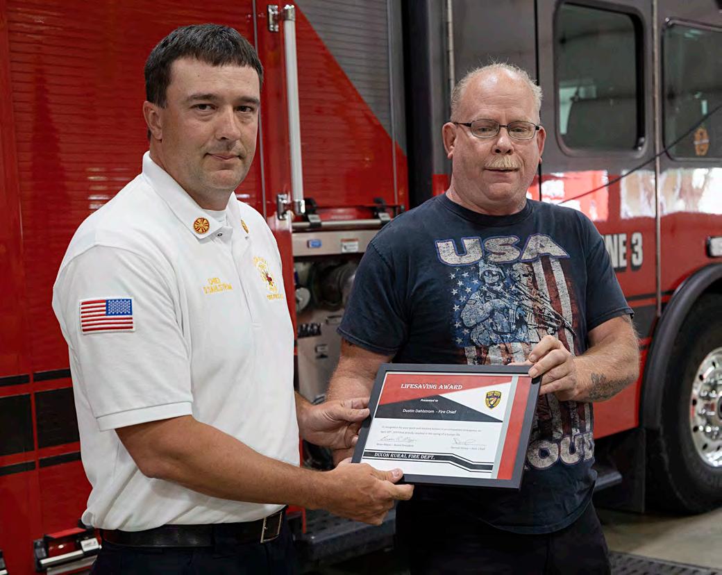 Dahlstrom’s actions were detailed at the June 11 district board meeting, where the man Dahlstrom saved presented him with the department’s Lifesaving Award.