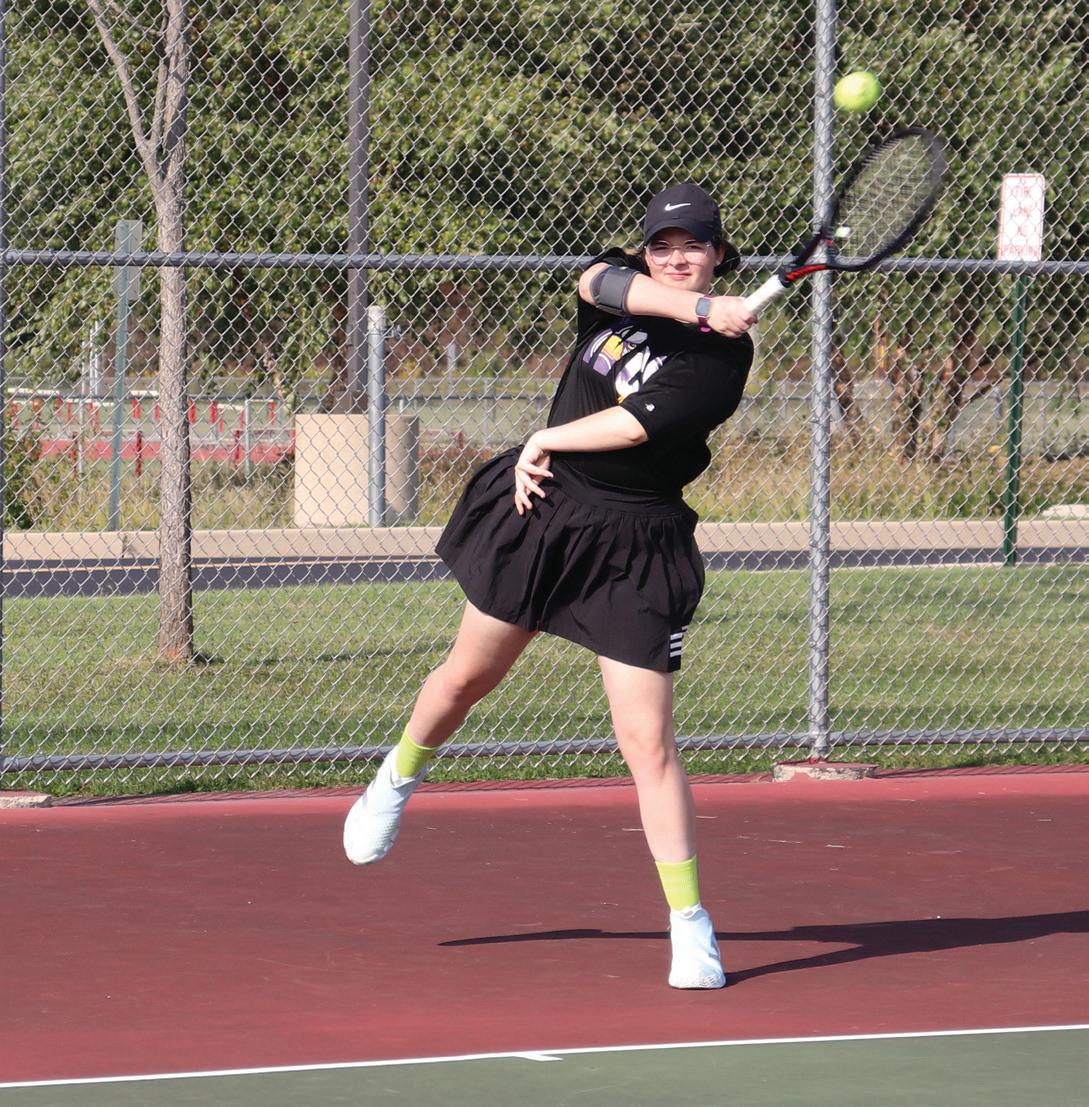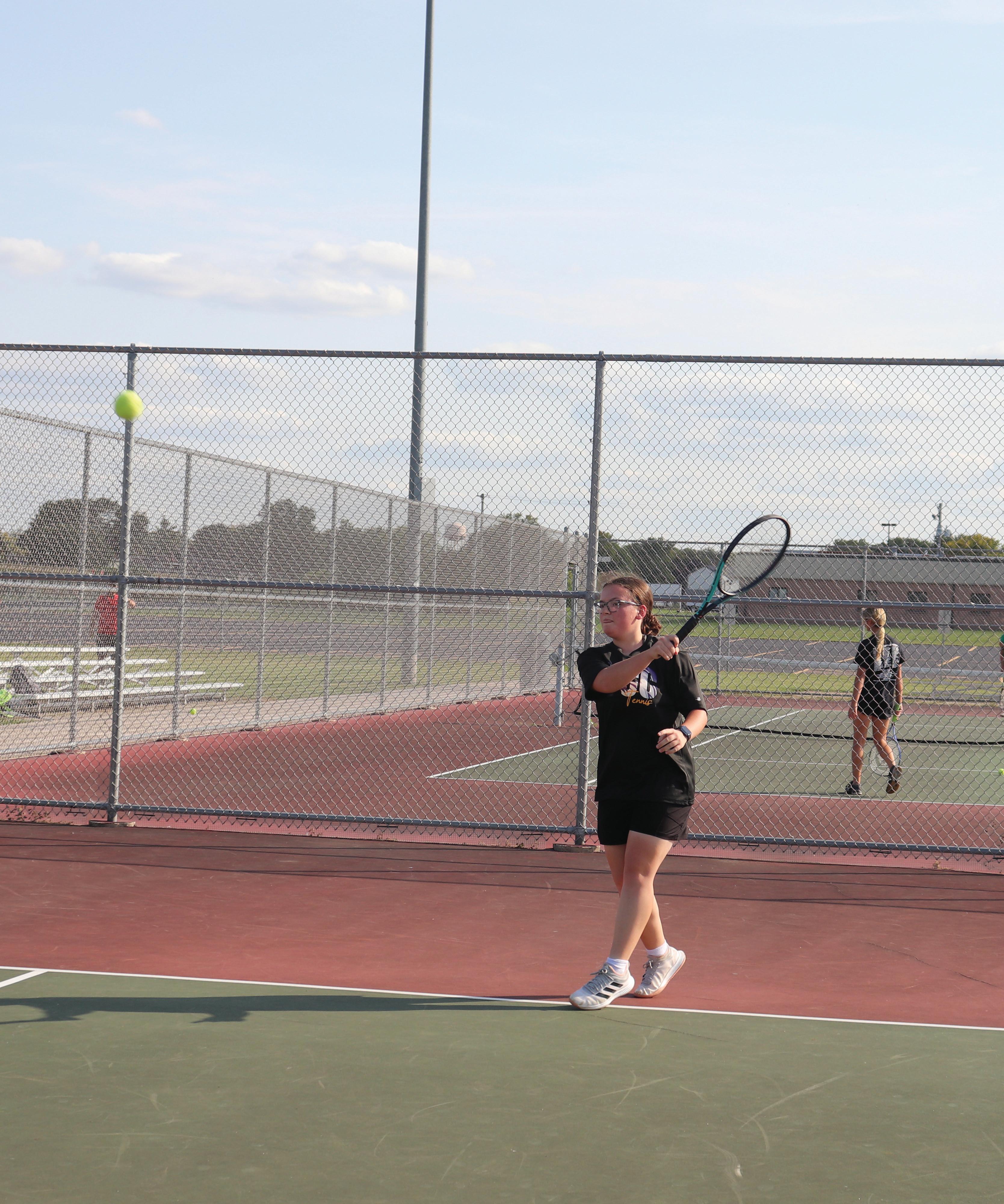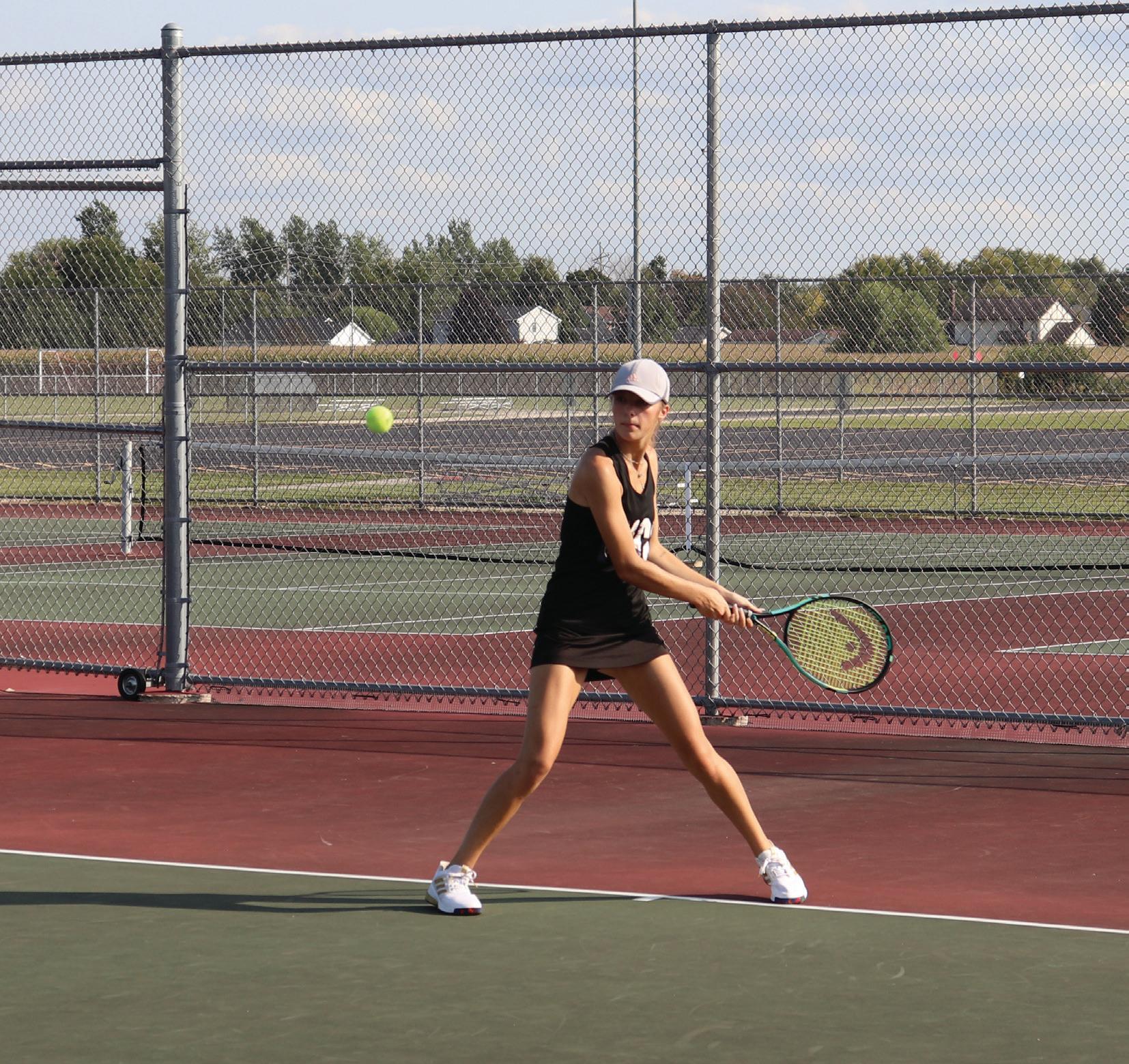 Freshman Maddie McGunnigal waits on the ball on Sept. 14. McGunnigal won her match vs. Oakton at the La Salle-Peru High School Sports Complex.