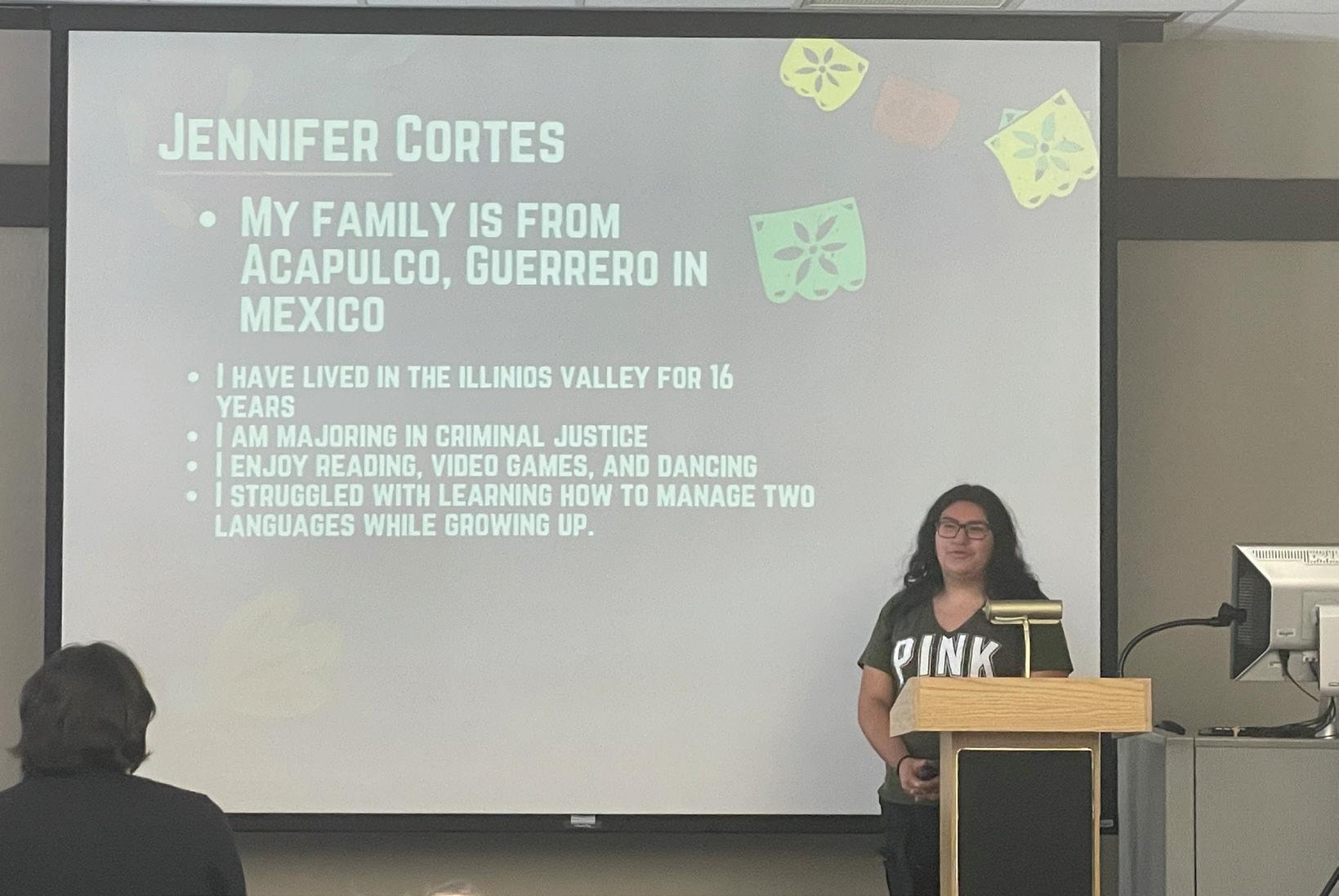 Jennifer Cortes shares information about her heritage at the student showcase that opened Hispanic Heritage Month activities a IVCC.