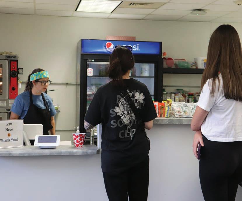 Students (above) are waited on in the cafeteria on Sept. 15. After being closed throughout the summer while construction projects ensued on IVCC’s lower level, the cafeteria reopened to students on Sept. 15. While students were able to get limited food service from the cafe o the mai oor duri the closure, more options are available for students now that the cafeteria has reopened. At left, Psychology instructor Vince Brolley makes his dining selections.