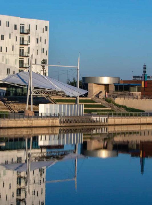 between the canal and the river, the Powerhouse allows water flows through the facility and that power is harnessed by two turbines to provide a safe and environmentally friendly hydroelectric energy source that is sold back to ComEd, providing both an environmental and economic benefit.