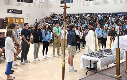 We were blessed to have Fr. Michael Joyce, O. Carm. on campus on October 2nd to celebrate our All-School Heritage Mass along with two Carmelites, Fr. Tracy O’Sullivan and Br. Eduardo Vega Paniagua. Extraordinary Ministers of the Eucharist were installed, freshmen and transfer students were invested with the Carmelite scapular, and new faculty members were given a San Damiano Cross. We are thankful to all who helped with this liturgy so that our JCA family could come together to honor the contributions of our co-sponsors, the Carmelites and Joliet Franciscan Sisters.