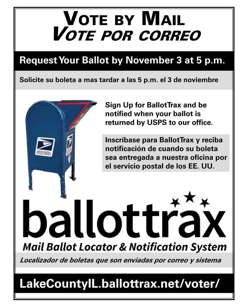 Before you can receive a ballot, you must be registered with your current name and address. Verify your information is up-to-date at LakeVoterPower.info or call 847-377-Vote (8683).