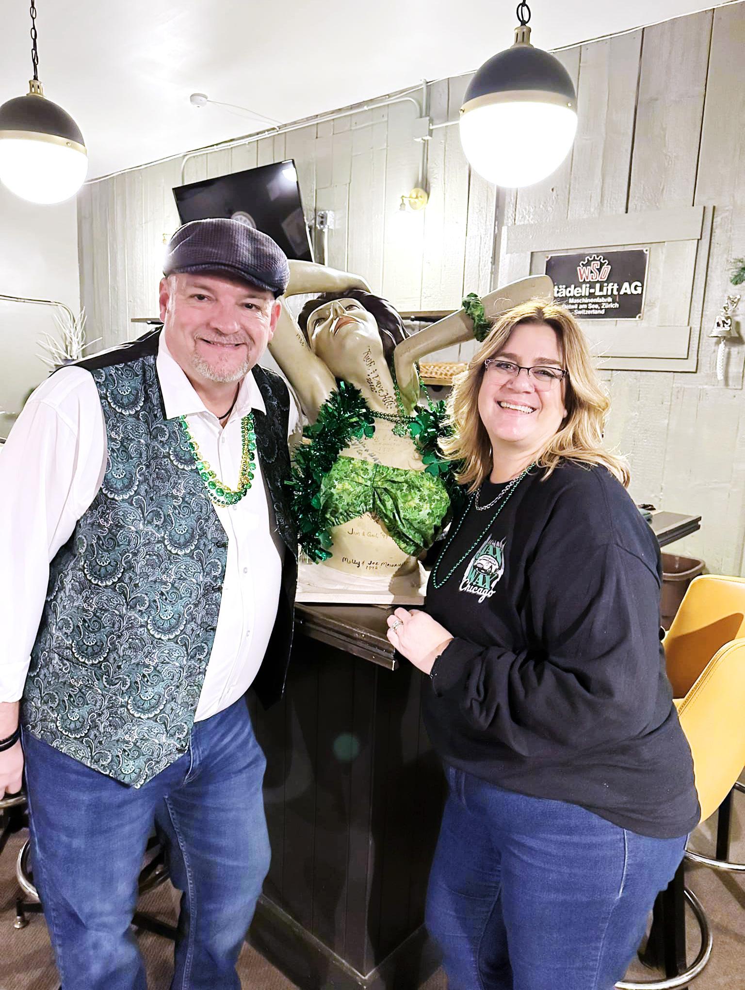 Luck be a lady Jeff and Tia Oliver pose with the “Lady of the Lake,” an iconic part of the Yacht Club’s history. It has been a part of Lake Carroll lore since the 1970s, and is awarded during the annual Robber’s Bingo to a lucky person who gets to hold on to it for a year. Tia was this year’s winner.