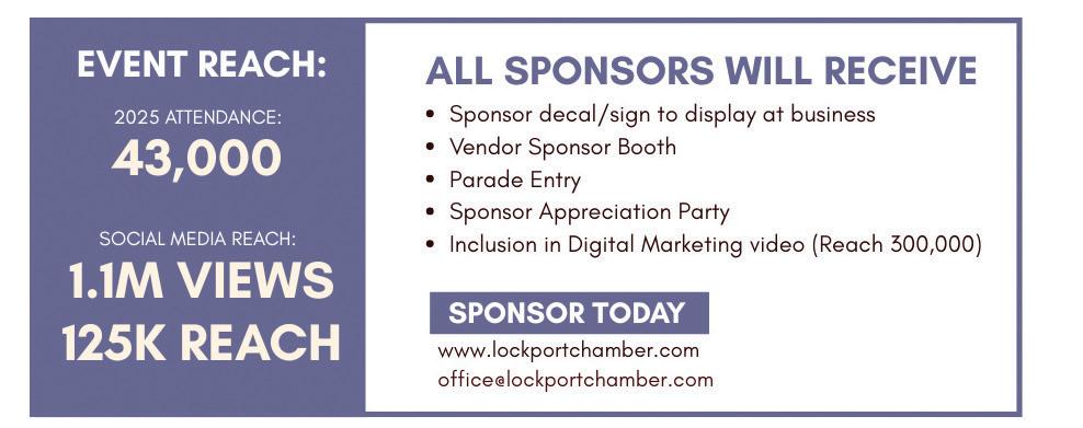 Mark your calendar for these monthly and/or annual events sponsored by the Lockport Chamber of Commerce. For calendar and event updates www.lockportchamber.com.