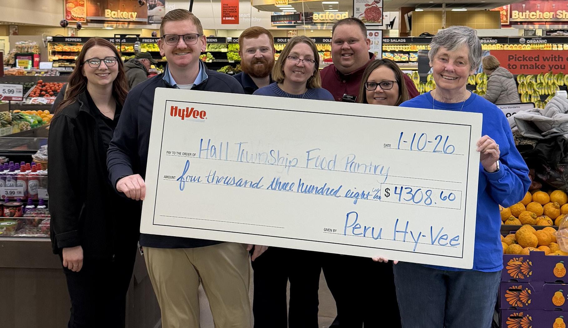 Peru Hy-Vee raised $4,308 to support two local food pantries through a November round-up campaign.