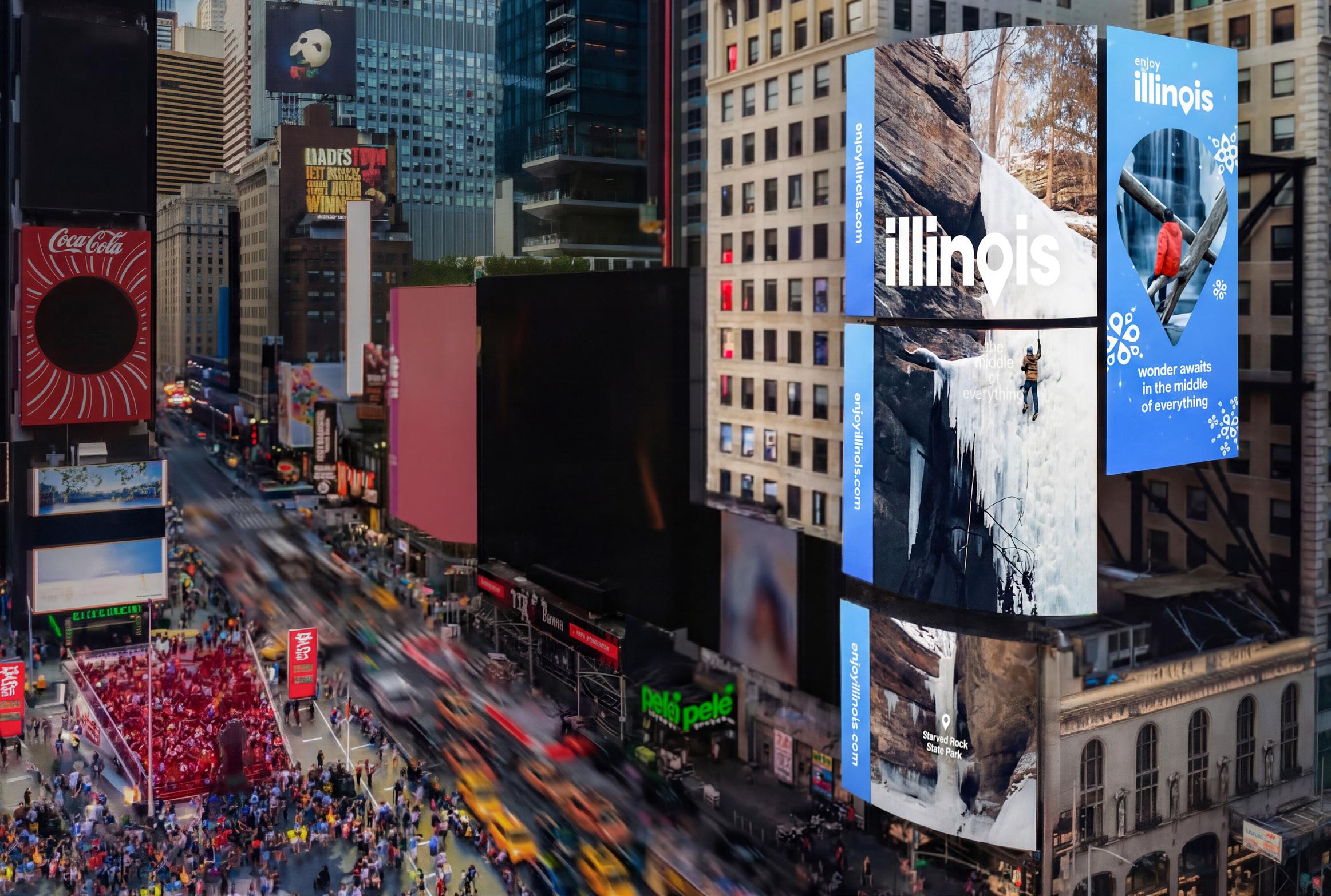 Winter visuals of Starved Rock, filmed by reelCreative, will appear on a Times Square billboard as part of the Illinois Office of Tourism’s “Enjoy Illinois” winter campaign.
