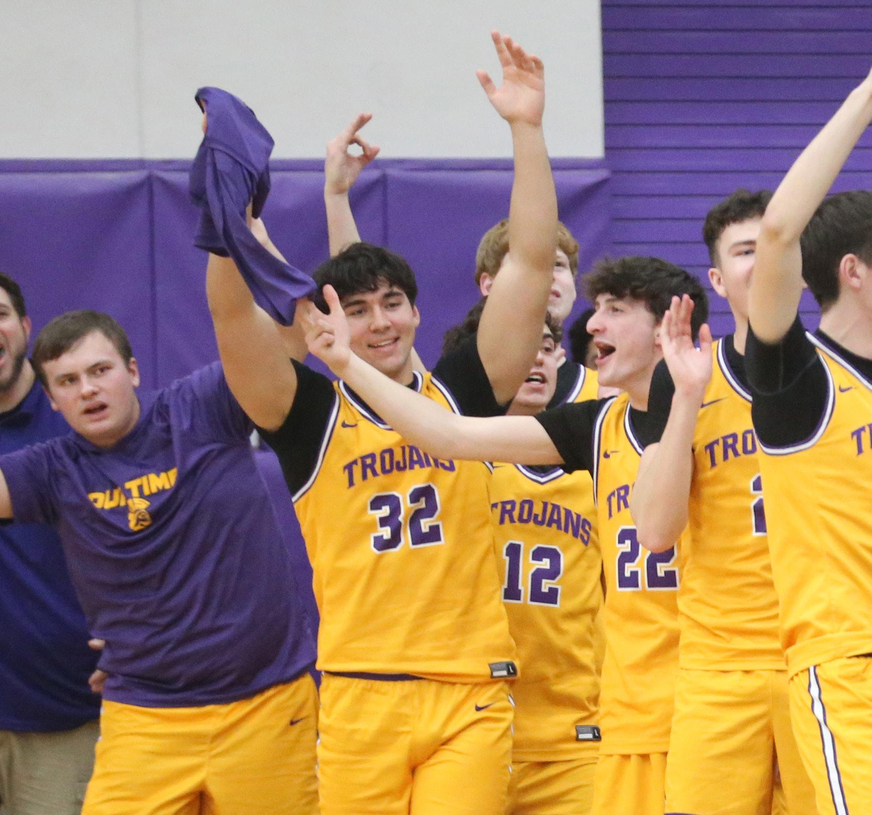 It was not until late in the third quarter that the Trojans were able to put the game away. They scored nine straight with baskets by Dane Doyle and Becker and a 3-pointer and a putback by Cole Tillman to go up 58-39.