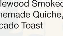Applewood Smoked Bacon, Sausage Links, Breakfast Potatoes, Scrambled Eggs, Homemade Quiche, Freshly Baked Biscuits and Sausage Gravy, French Toast, Avocado