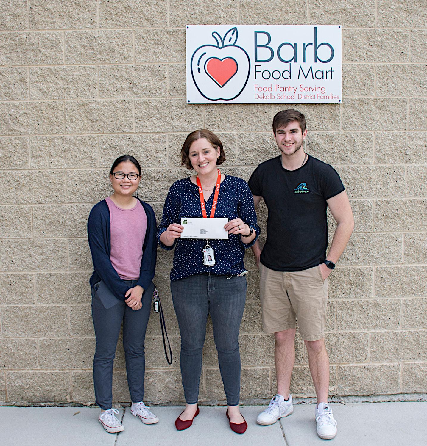 Youth Engaged in Philanthropy members Elizabeth Kleckner, Maddie Voorhis and Thomas McComb present a proactive grant to Courtney Waltz, Spartan Food Pantry director. See story, page 6. Photo provided by DeKalb County Community Foundation