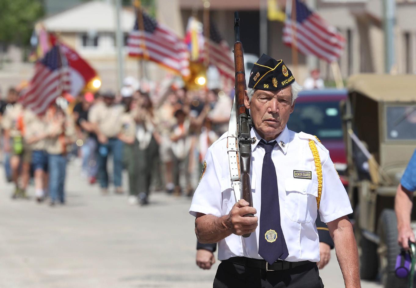 A member of American Legion Post 99 heads east on Elm Street on May 29 during the Sycamore Memorial Day parade.